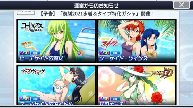 - 水着に絡みで攻撃特化、攻撃回避、攻撃防御、攻撃命中のピックアップがされるということは