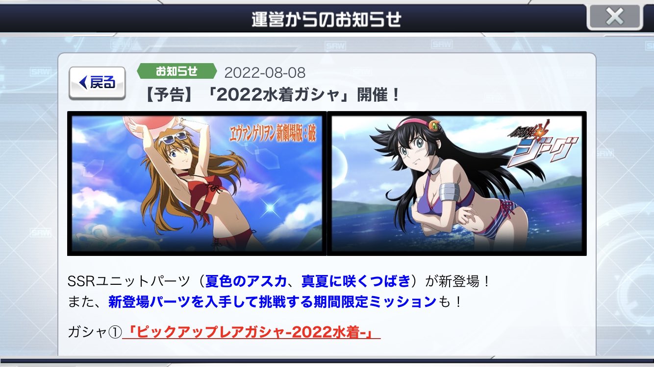 - 水着アスカは昇格したらもっと能力上げてもいいのにな