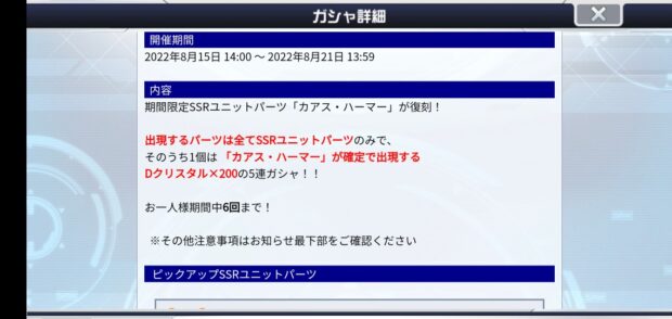 ユニットパーツって名称が分かりにくいが、必殺技パーツ、支援パーツまとめたものが