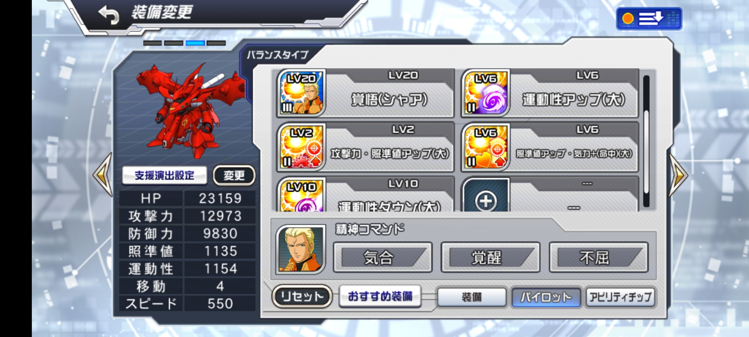 シャアの育成方針、俺も迷ってます。まだ第一SSRしかないから何とも言えないけど防御以外は高水準なんでどれに振っても強そう。。。