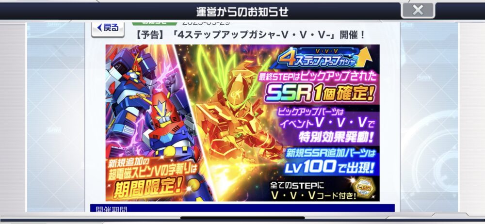 コンVにはサイズ限定よりブレイクUPの方が制圧とかで使いやすいしヴヴヴも気力毎必殺威力くれればカイザーユニコーンに次いで迎撃戦の星になれたのになぁ対決仕様にしたところで育てるのに手間かかる+枠ないで殆どの人はいらないから取りに来ないのに