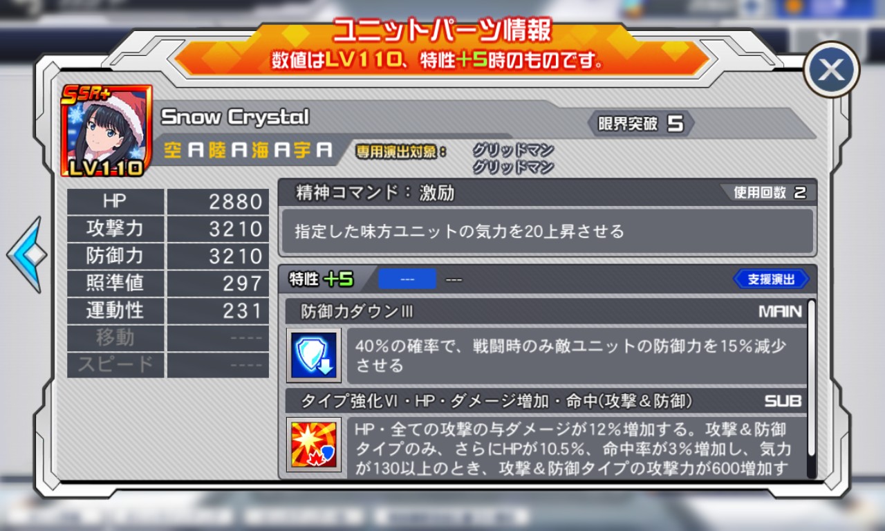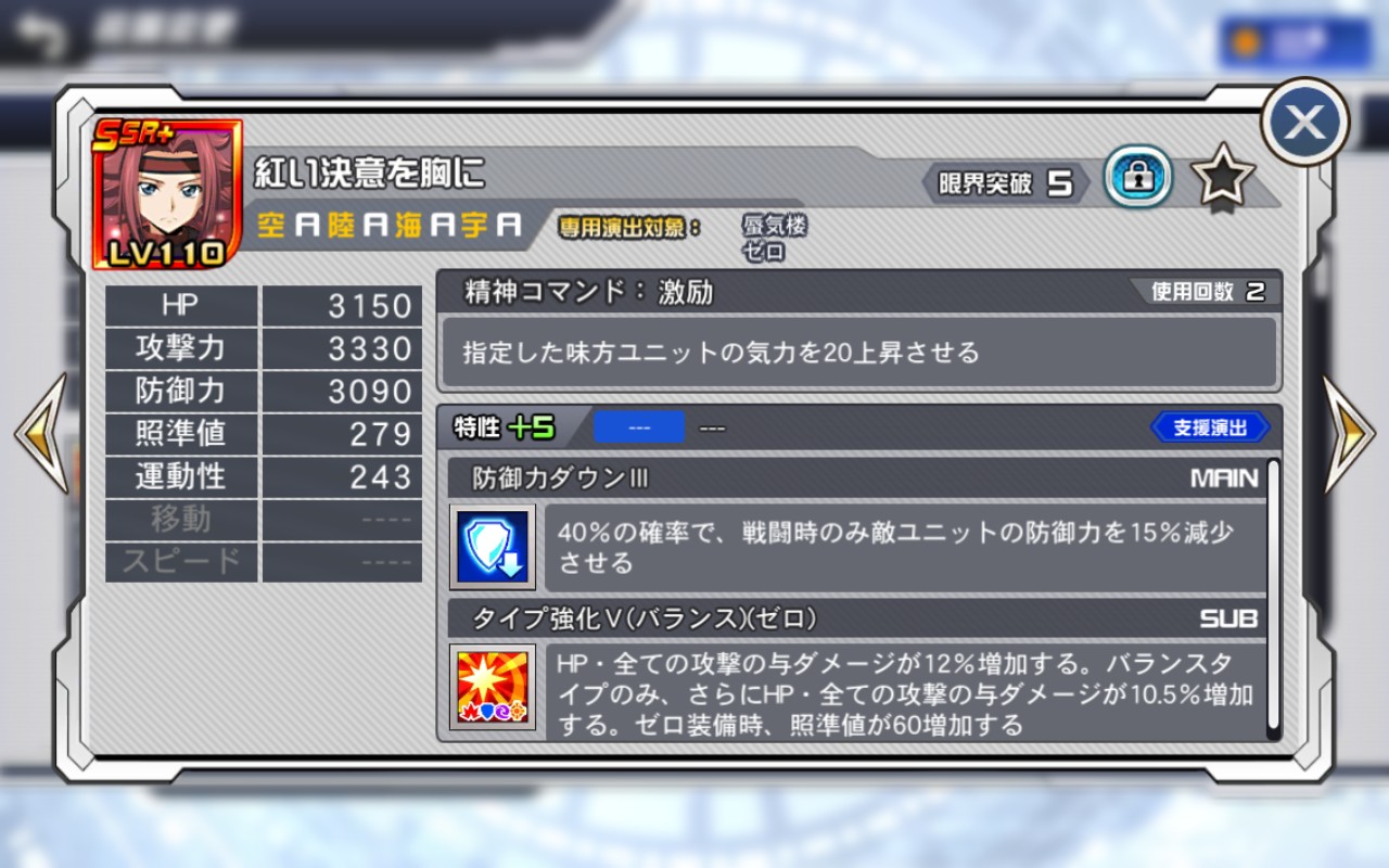 今回のクリ限定のアビリティ設定は昇格しなくても特性5にした時点で通常支援の昇格済み相当なのよ。