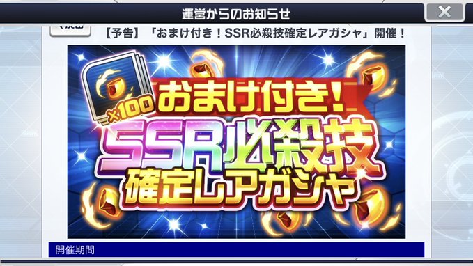 - 制圧戦に合わせて第1SSRとシャッテのピックアップガシャ開催→2周年のセレクトで第1SSR追加かな