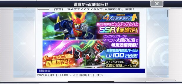 【ガシャ】「4ステップアップガシャ-太陽の化身-」が7/31にくるぞ!!