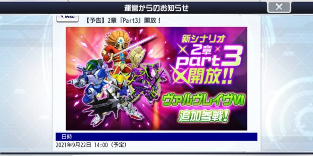 【朗報】9/22に2章Part3が開放、ヴァルヴレイヴ追加参戦くるぞ!!