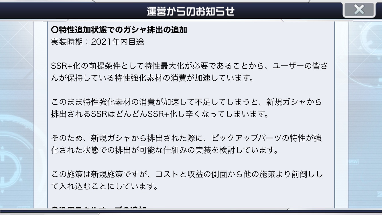 特性+で出るガチャにコスト割くくらいなら、タレの入手手段増やしてくれればそれで済む話なんだけどな、コレ
