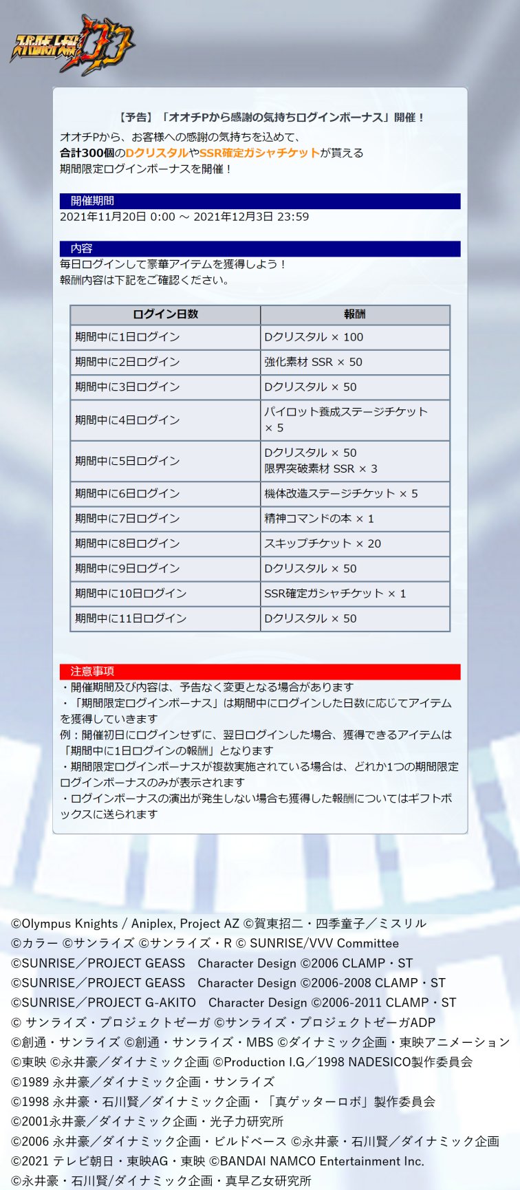 【石配布】本日から『オオチPから感謝の気持ちログインボーナス』!!⇐感謝の気持ち・・・?