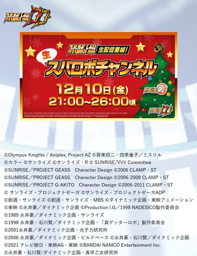 【朗報】12/10に生スパロボチャンネル放送決定キタ━━━(゚∀゚)━━━!!