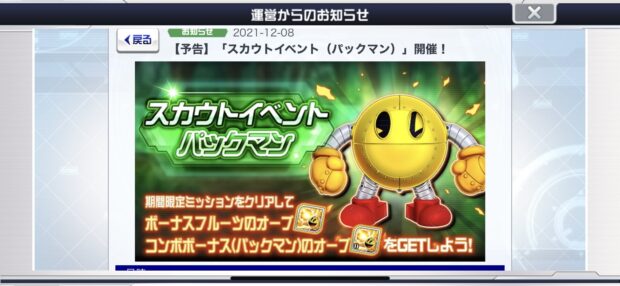 【イベント】「スカウトイベント(パックマン)」がくるぞおおお!!
