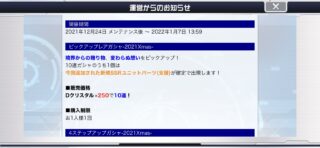 【質問】あれ今年は一回限定250クリスタルのクリスマスガチャはないの?