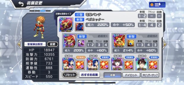 自分のライガーは、特性伸ばしても、射程伸ばしているせいか運動性2700止まり。双子って2種類あるんだっけ?